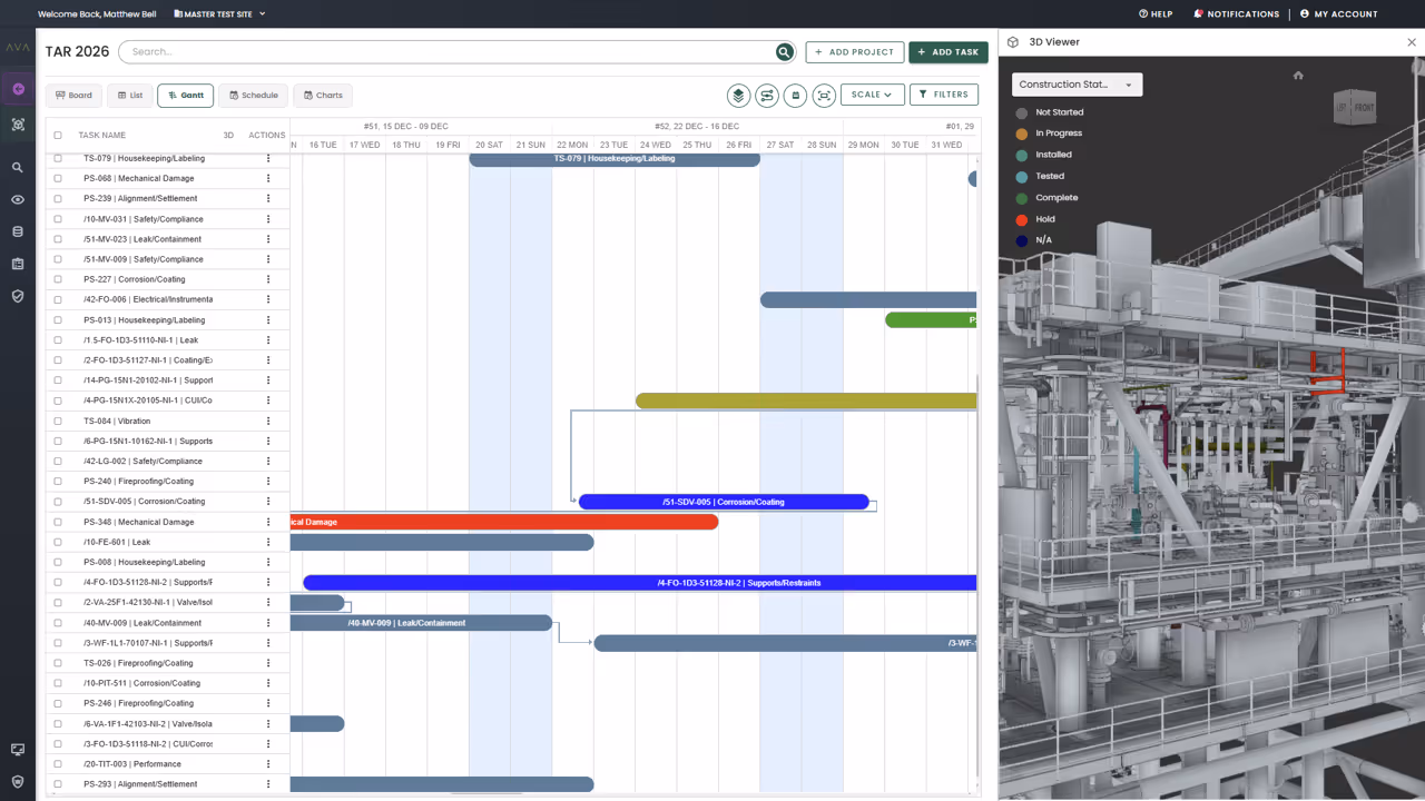 Rather than replacing them, AVA contextualises data across engineering, planning, integrity, and construction to create a single, governed source of truth with live status and full traceability.
